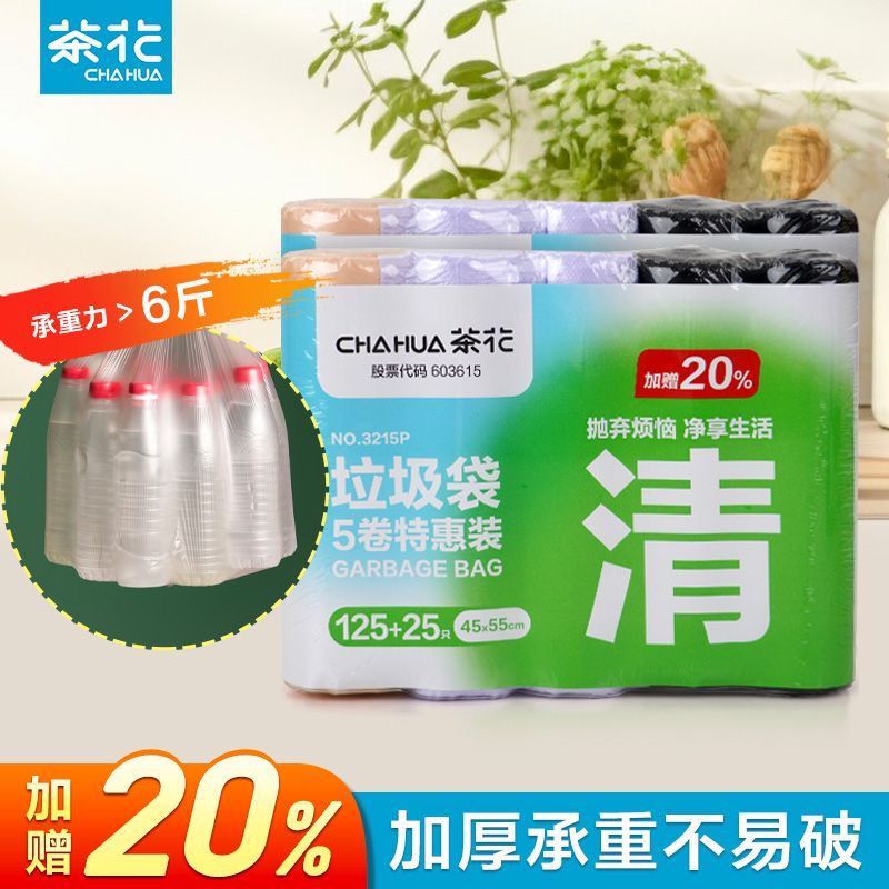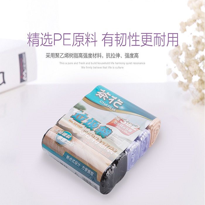 茶花垃圾袋家用手提式 3卷5卷香味客厅加厚点断式供应大号塑料袋