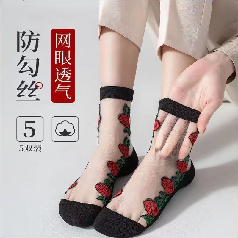 春夏季百搭时尚女袜子10双薄款水晶透气防滑跳舞袜耐磨复古中筒袜
