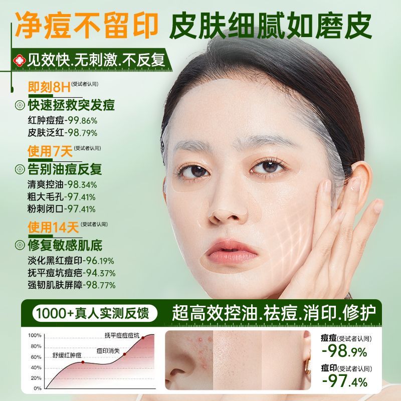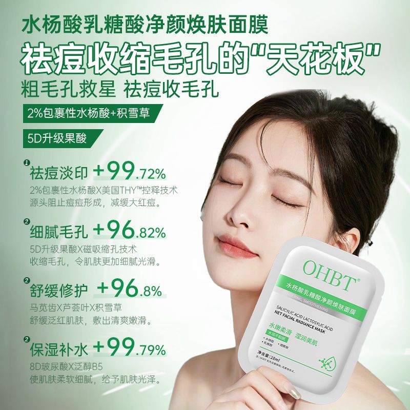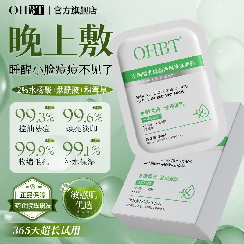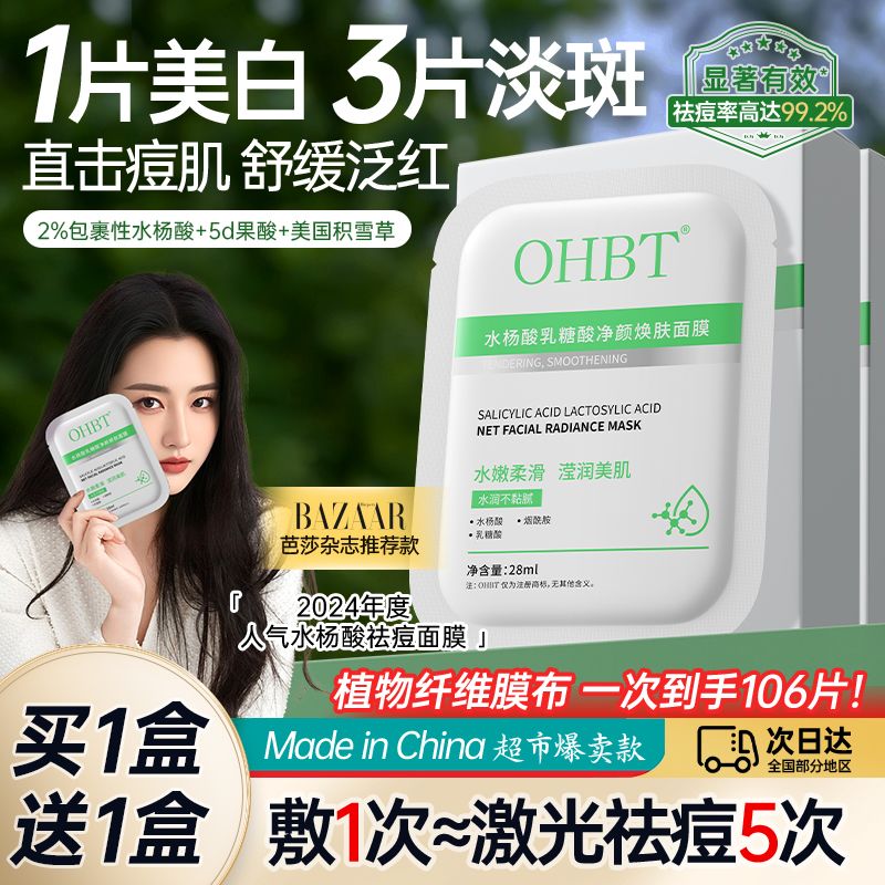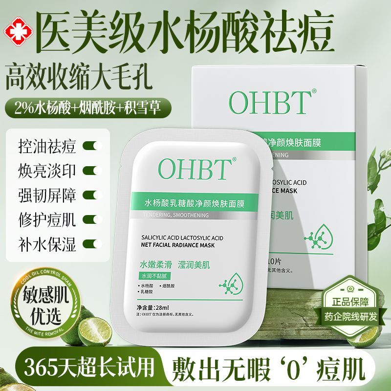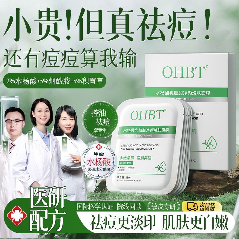 药企科研xOHBT水杨酸祛痘面膜控油淡化痘印补水保湿收缩毛孔男女