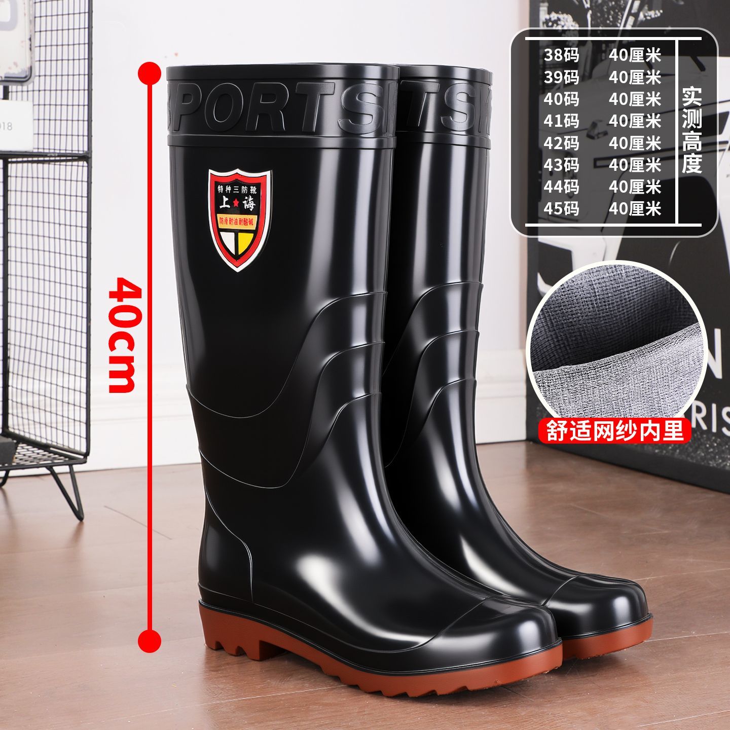 加厚牛筋底劳保男士雨鞋防滑耐磨加绒厚底黑色高筒雨靴防水鞋男