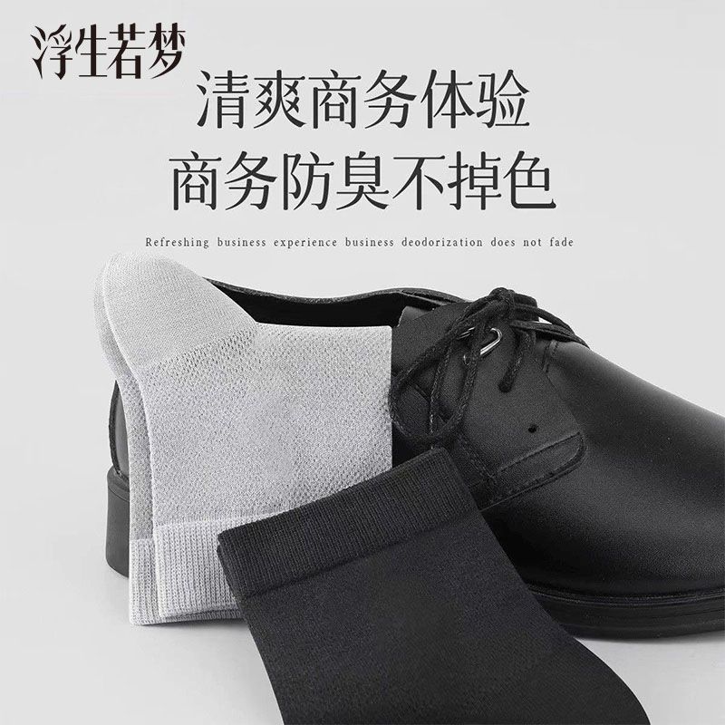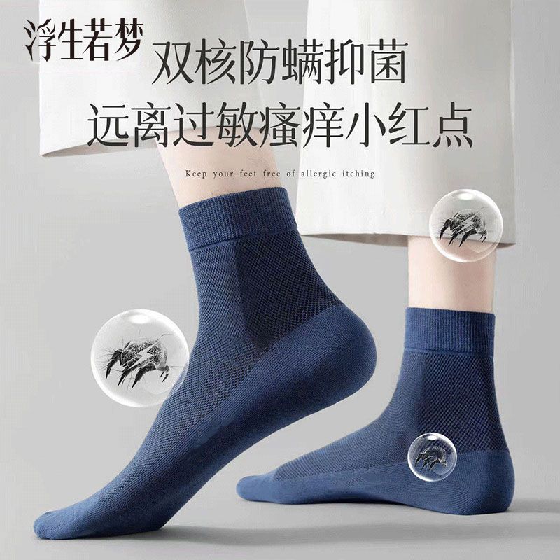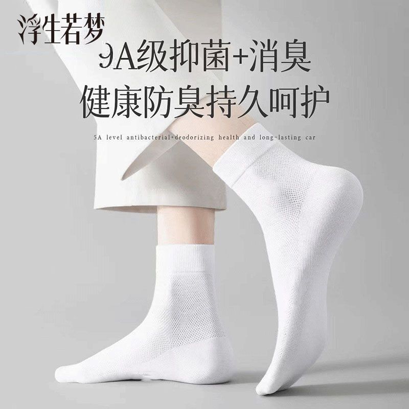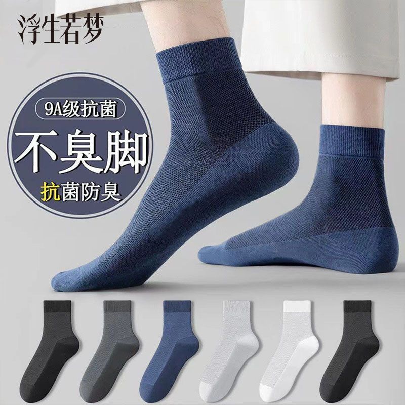 抗菌夏季薄款透气吸汗袜子男士纯色防臭中筒网眼商务袜