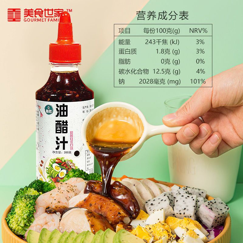 零脂肪油醋汁低脂沙拉酱和风日式油醋汁0脂肪轻食蔬菜水果酱280克
