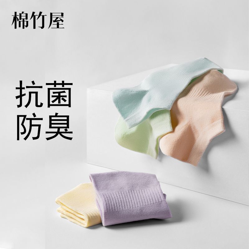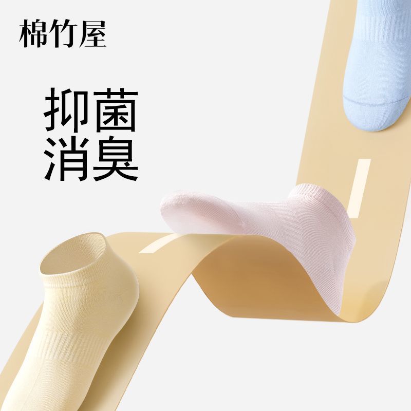 棉竹屋清仓男女防臭抗菌吸汗透气袜子船袜日抛袜吸湿排汗纯色短袜