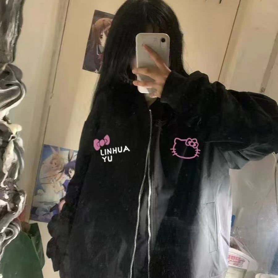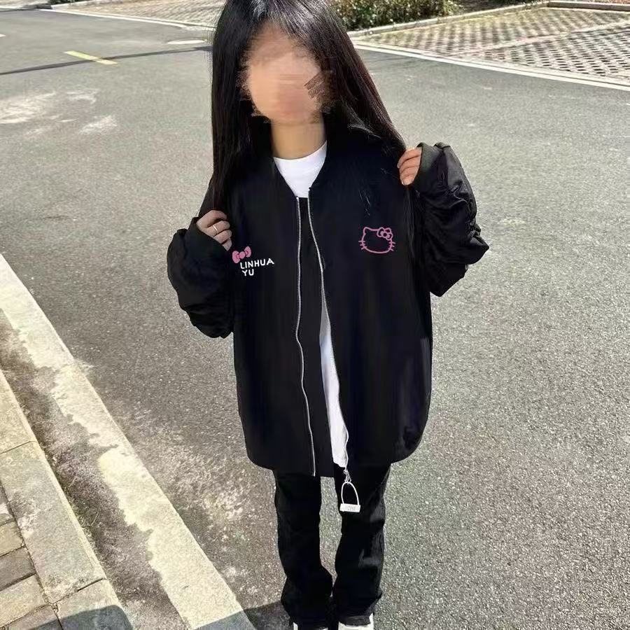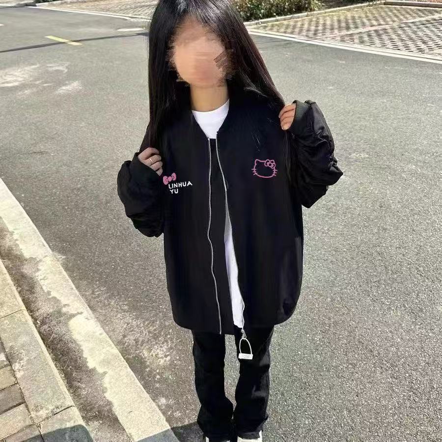 美式复古凯蒂猫飞行夹克2025宽松春季中大童新款棒球春秋学生外套