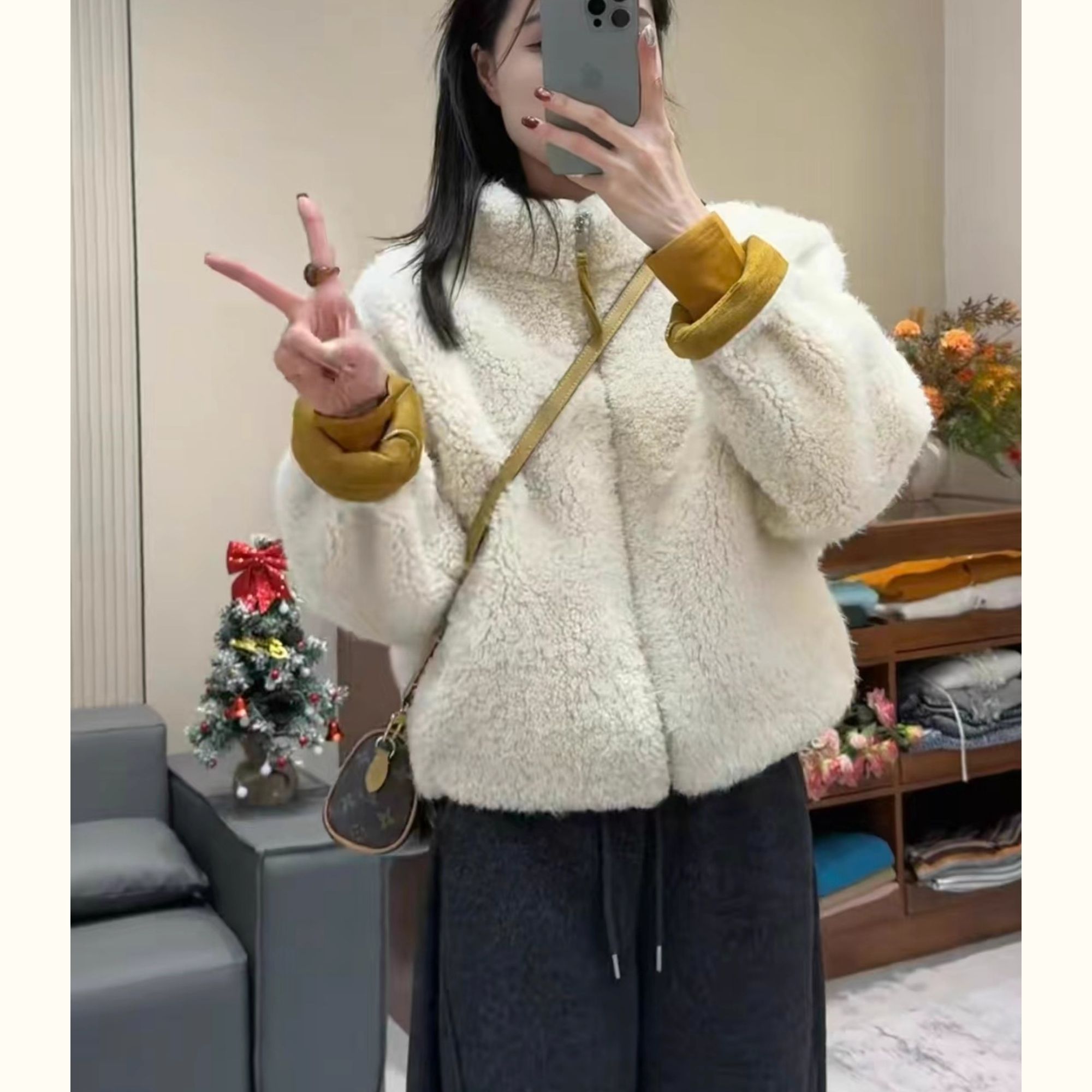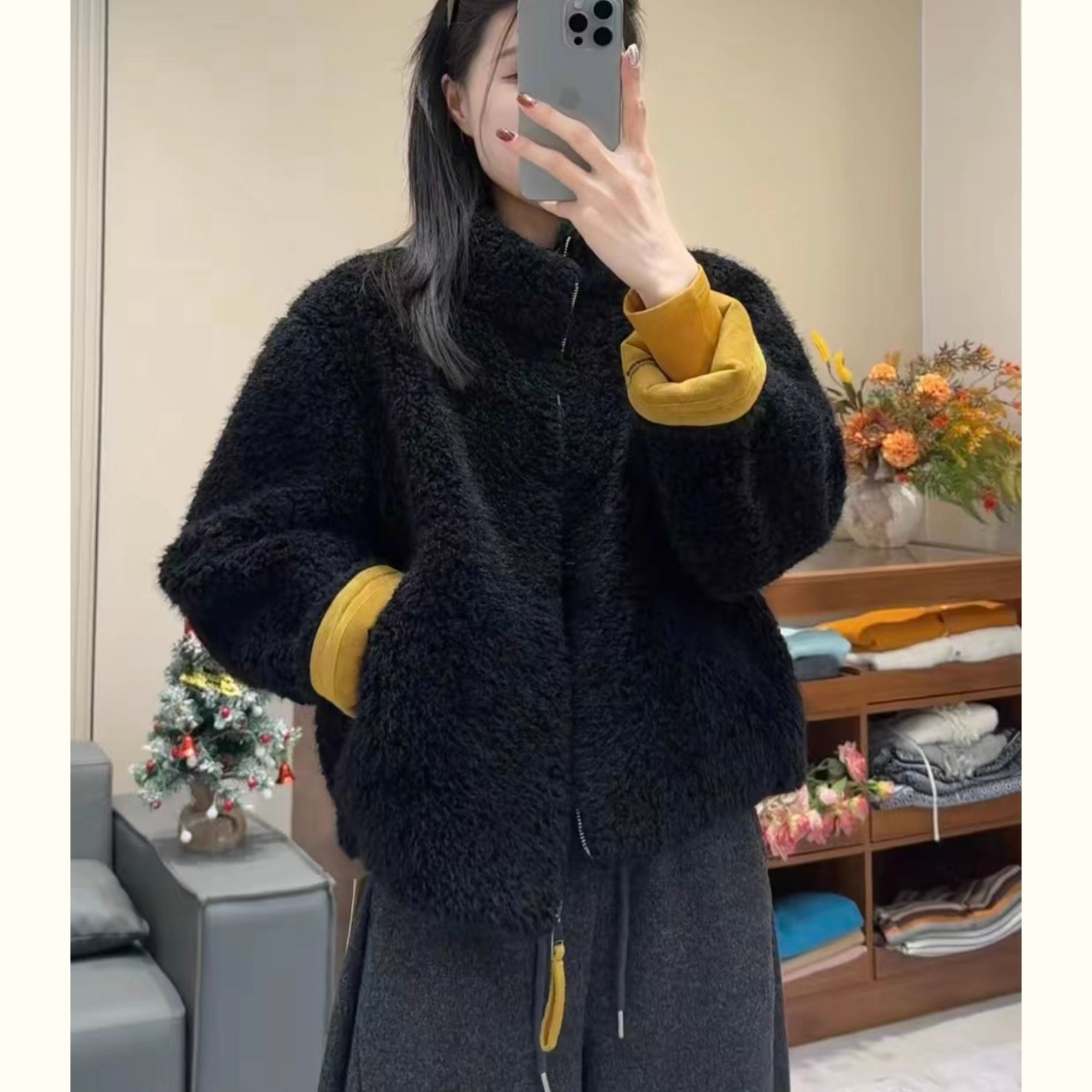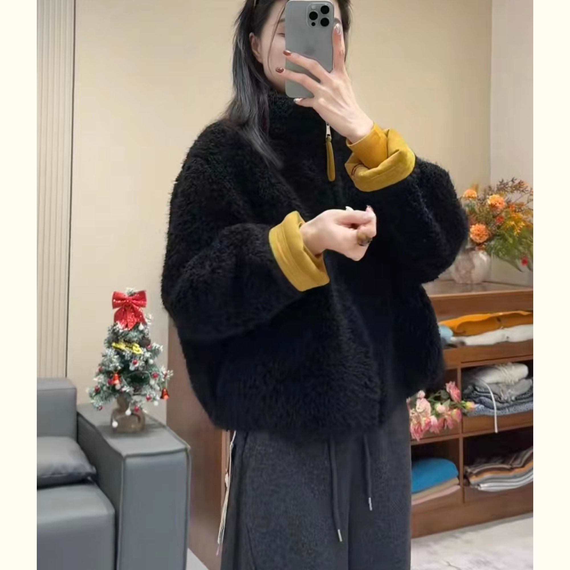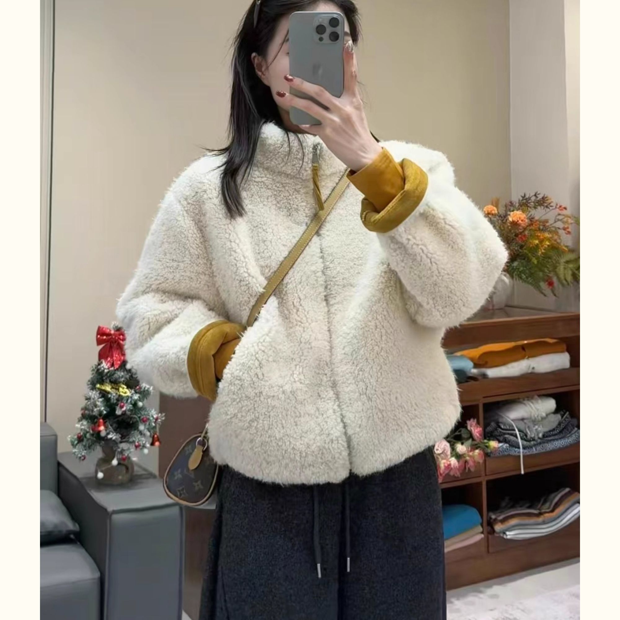 韩系立领仿羊羔毛外套女冬季2025新款高级感时尚皮毛一体保暖上衣【3月12日发完】