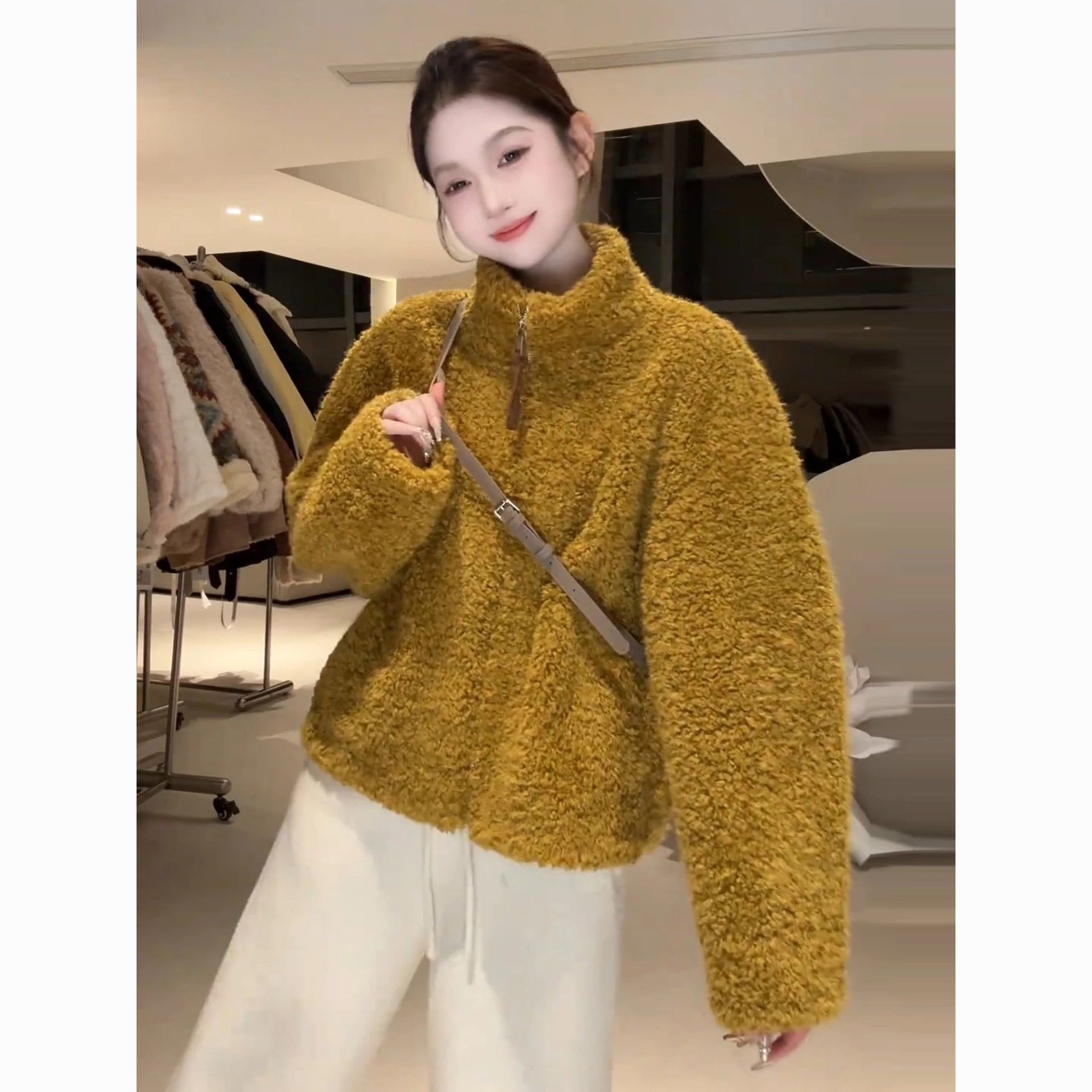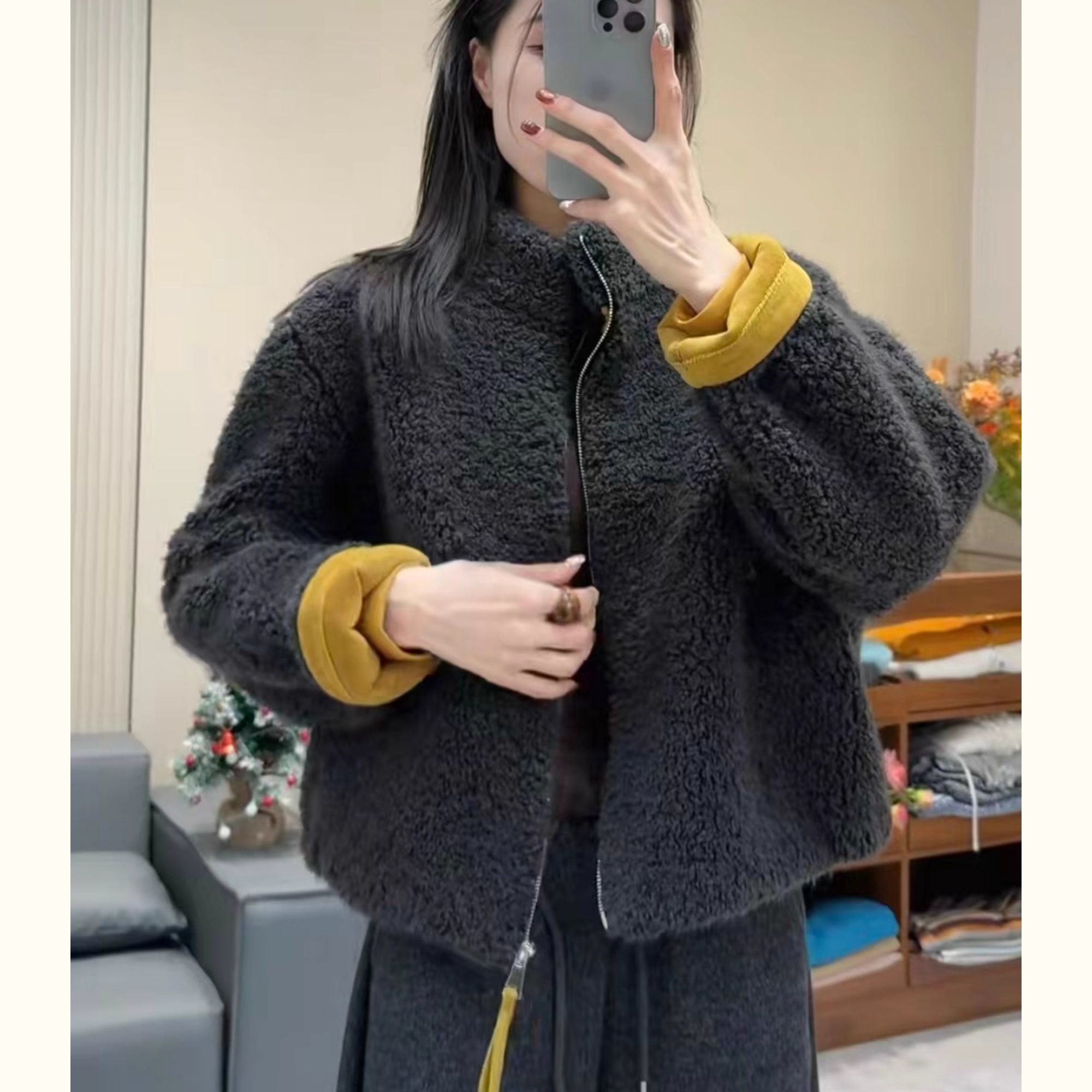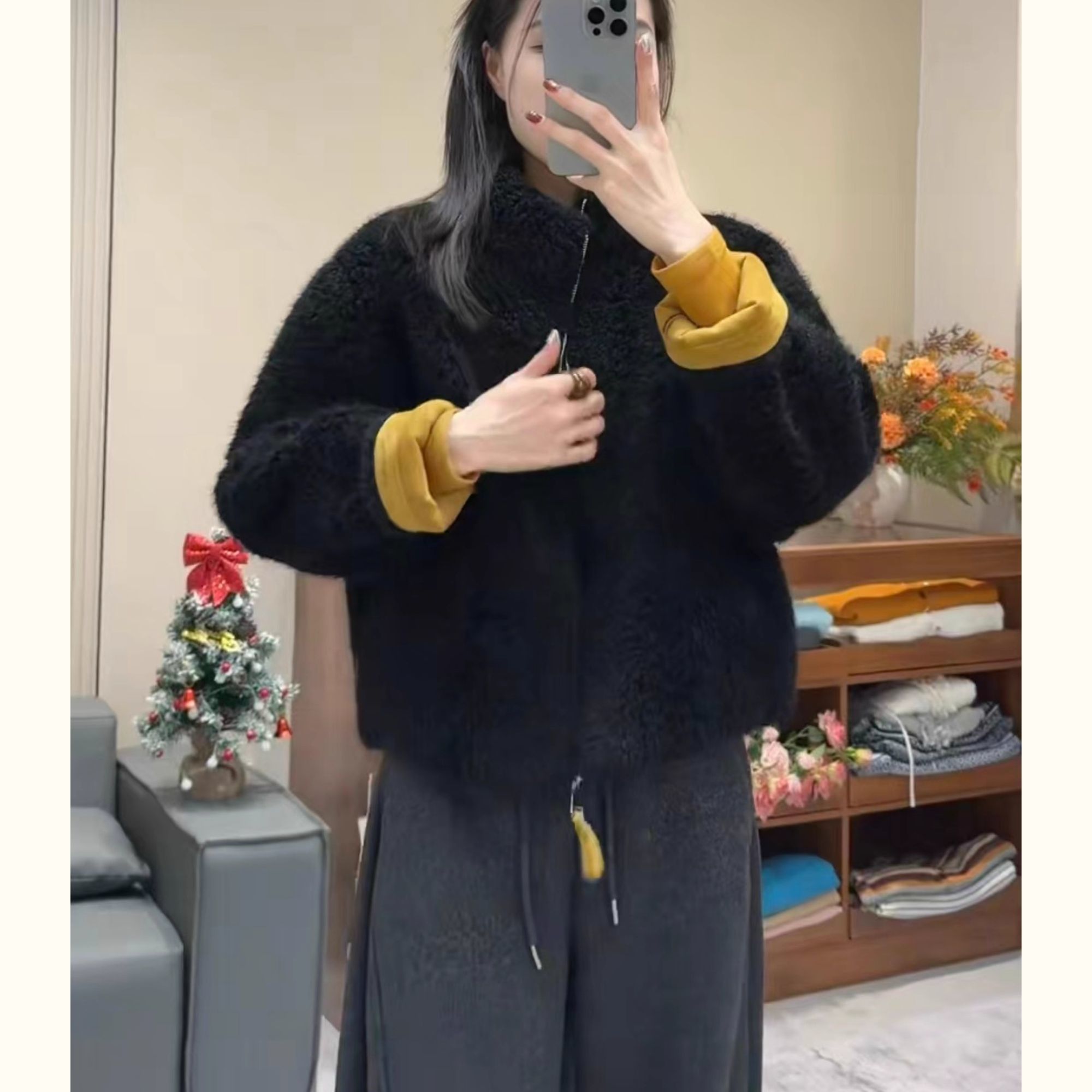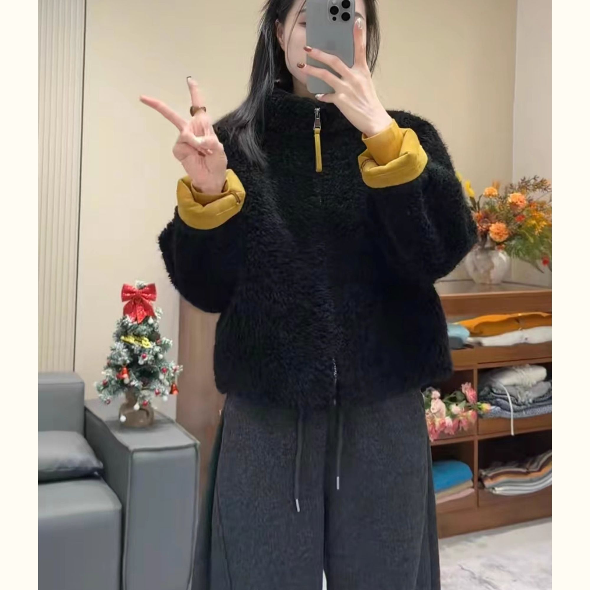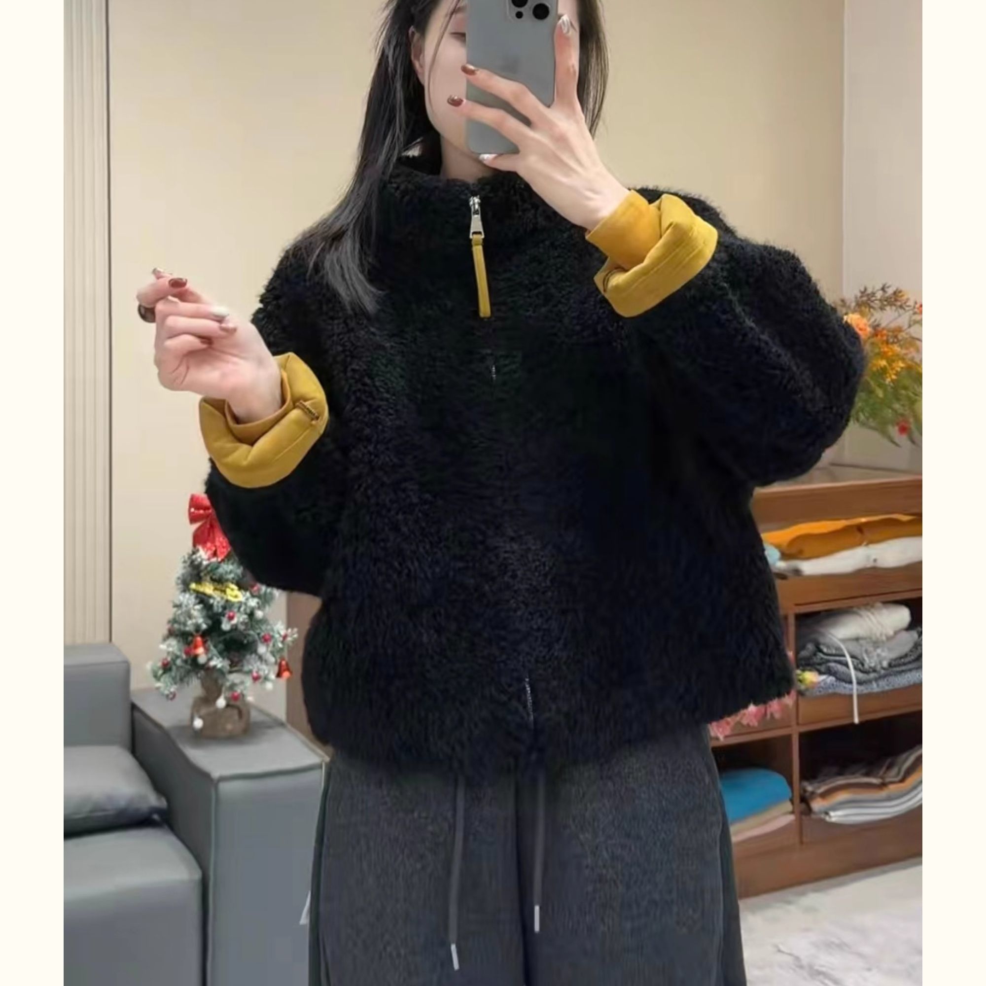 韩系立领仿羊羔毛外套女冬季2025新款高级感时尚皮毛一体保暖上衣【3月12日发完】