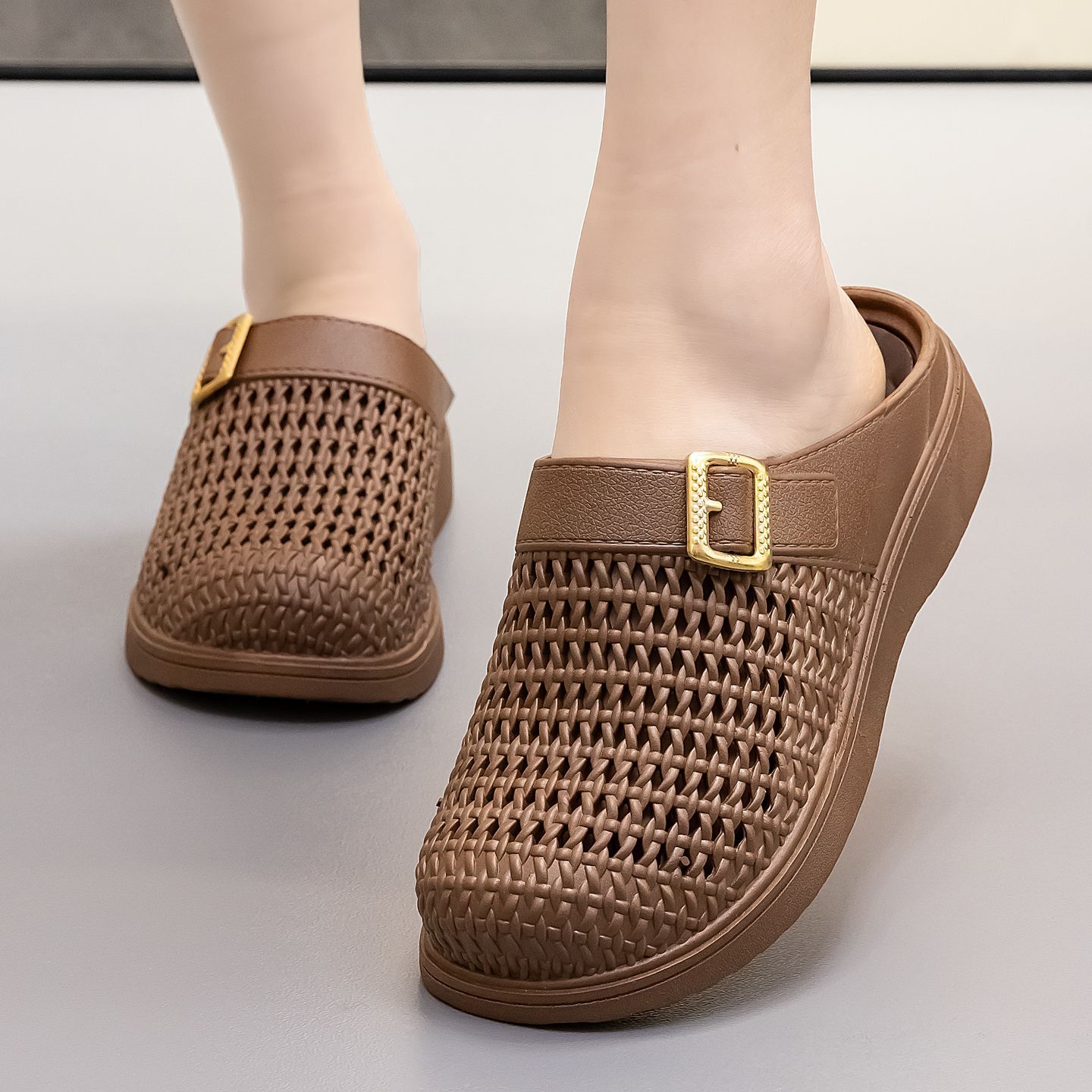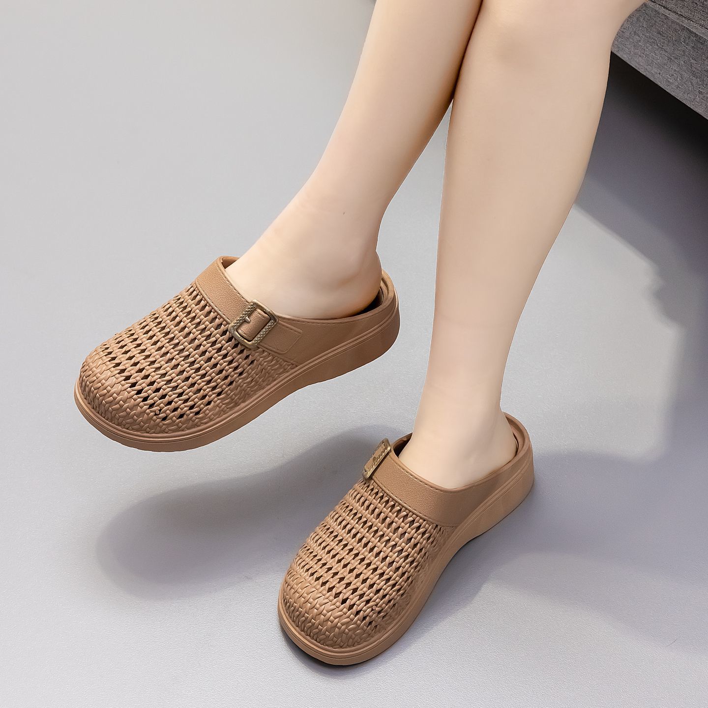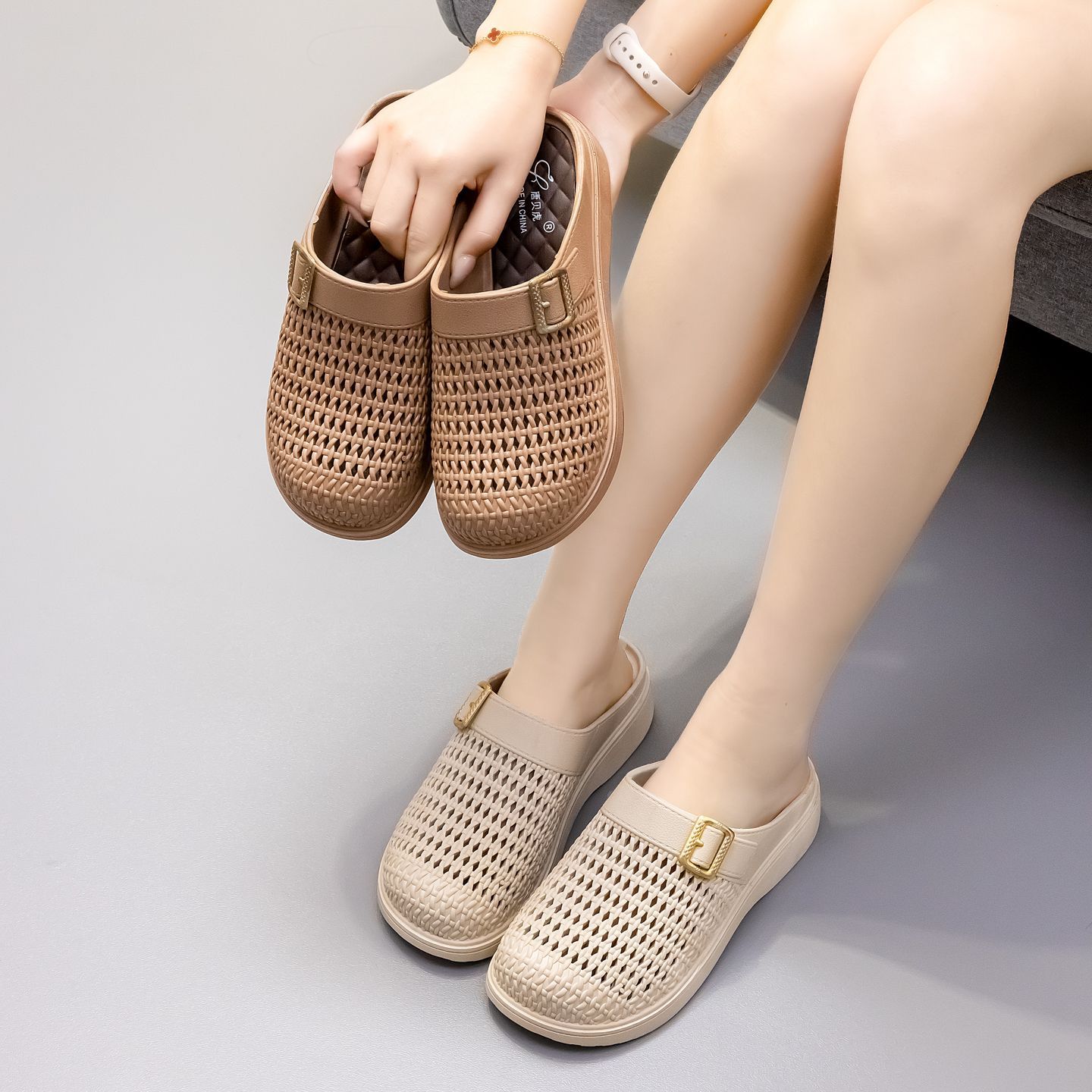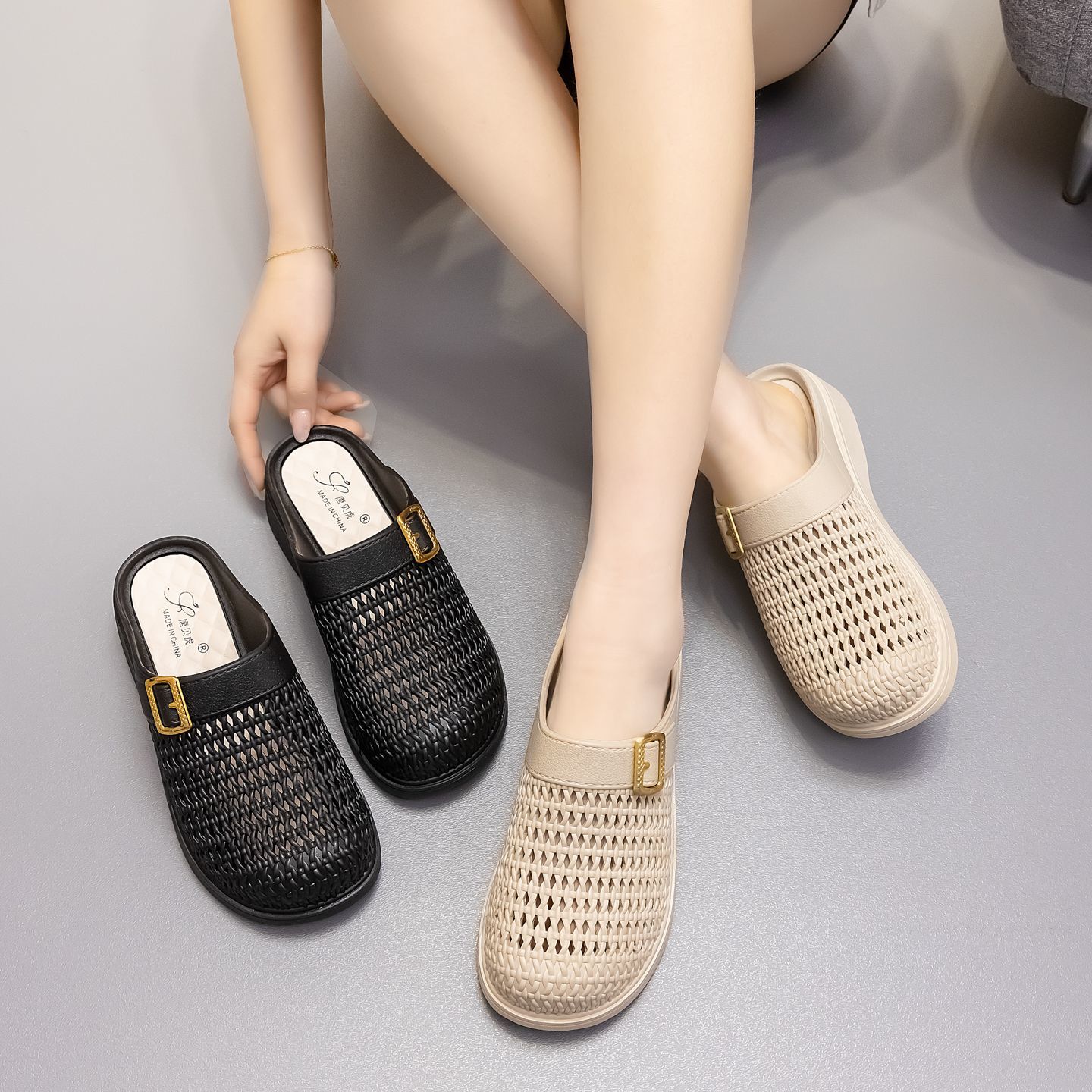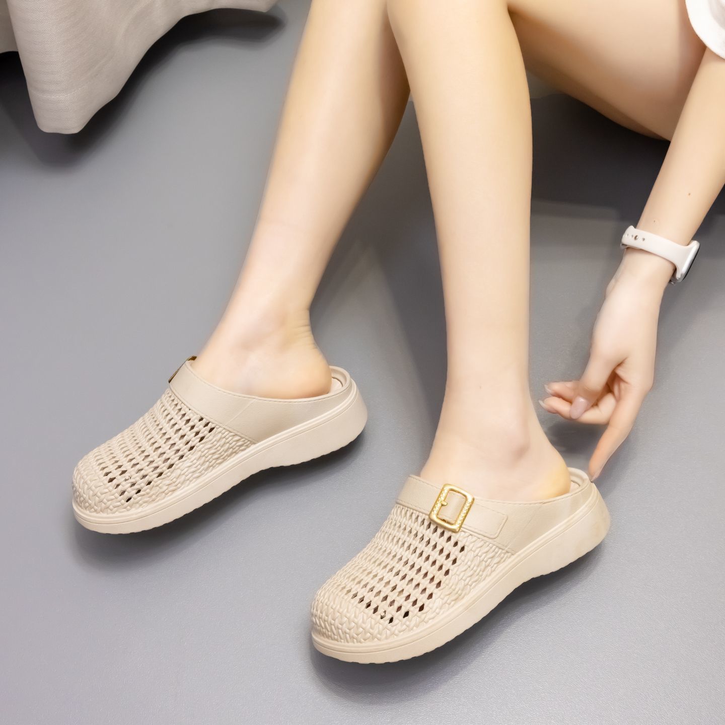 2026新款百搭透气洞洞拖鞋显脚小包头拖鞋女软底防滑镂空复古女拖