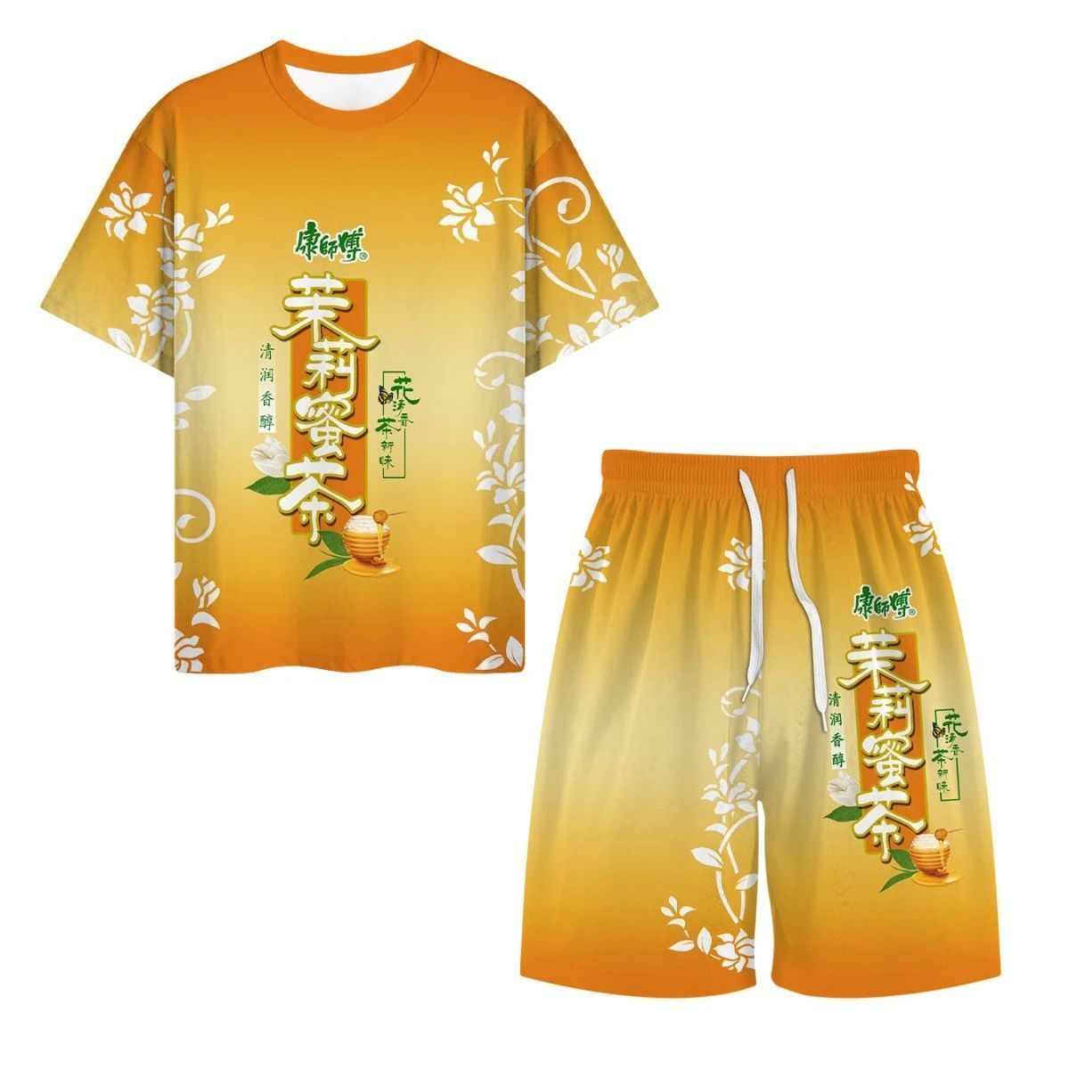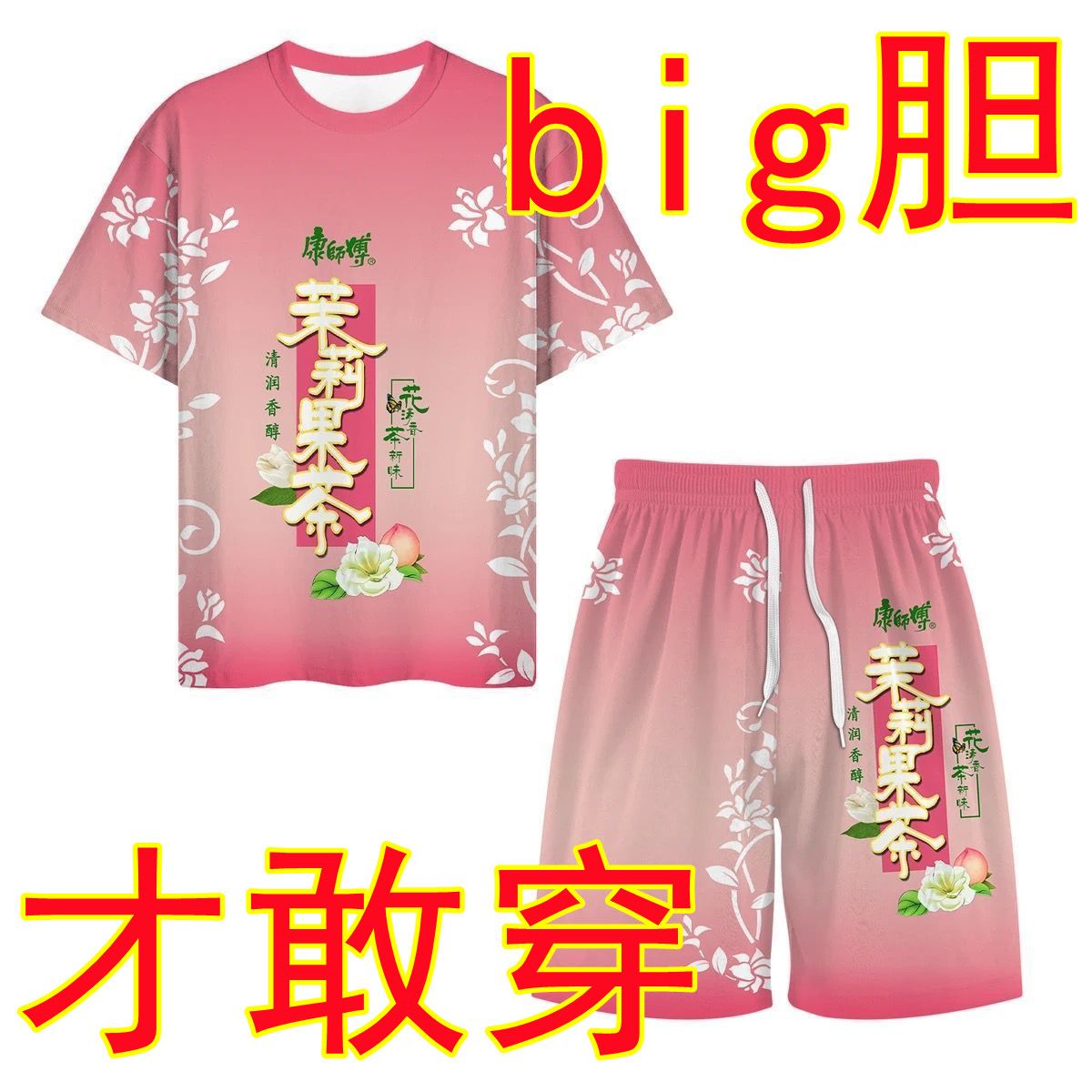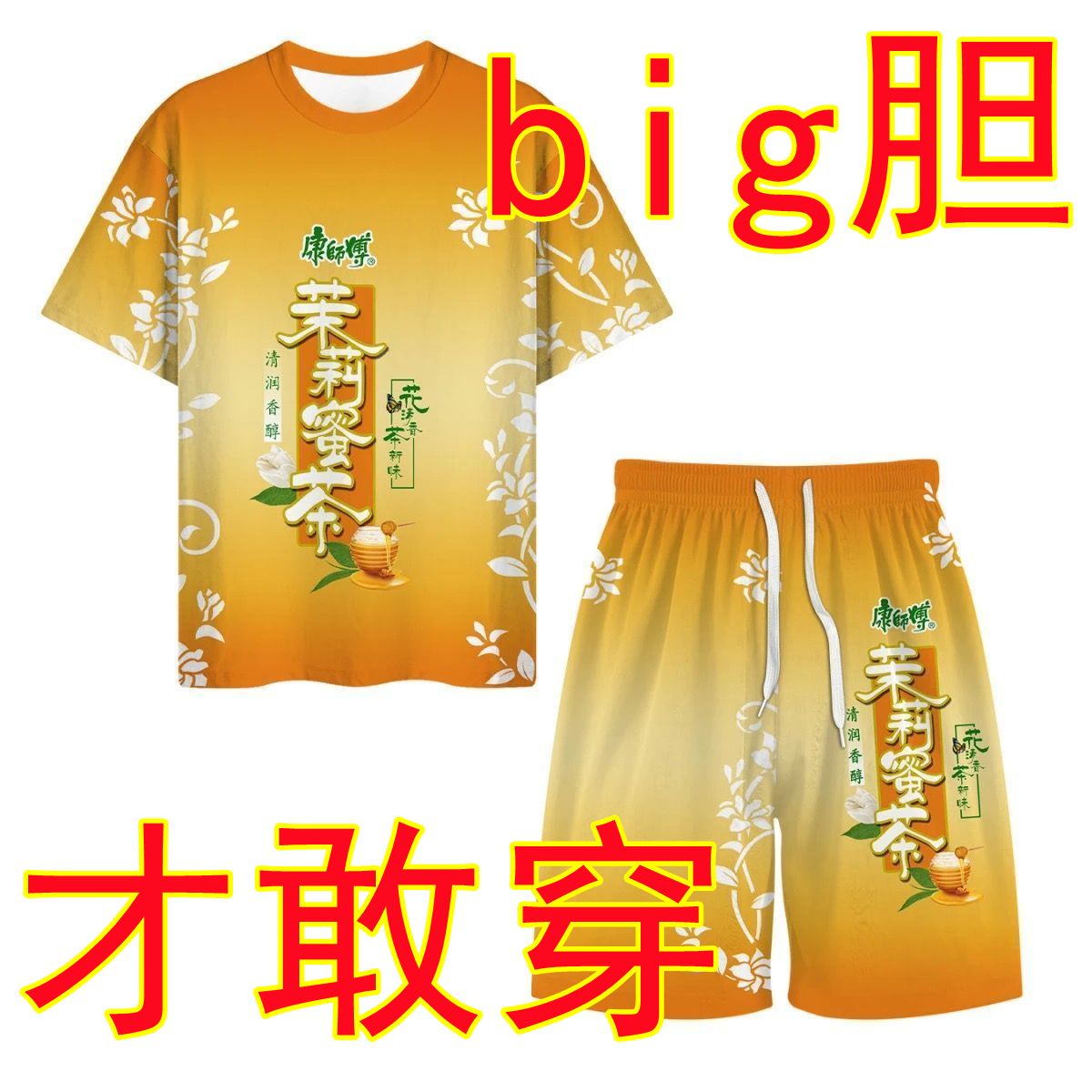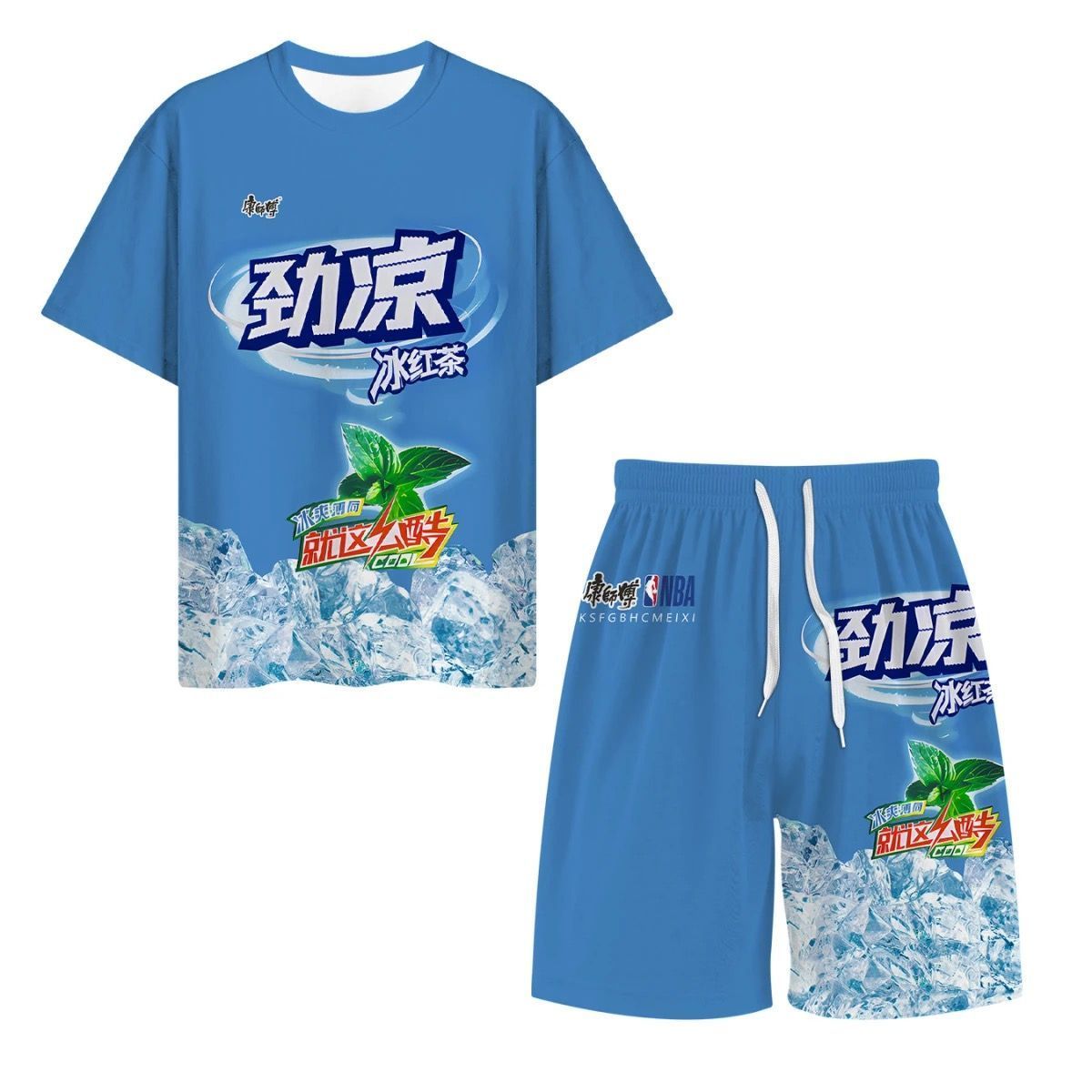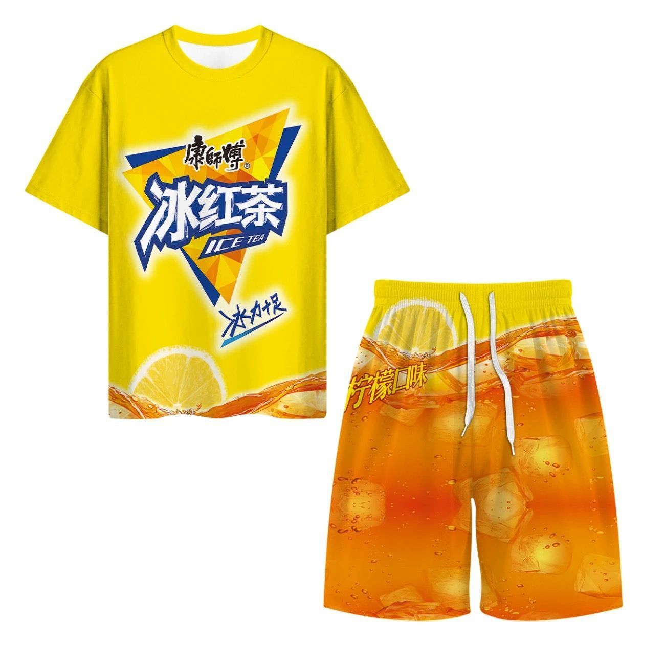 抖音爆款冰红茶T恤短袖上衣短裤套装夏季战衣劲凉背心短袖1/2件