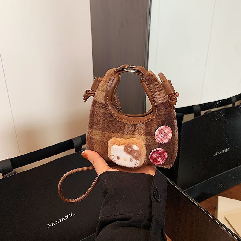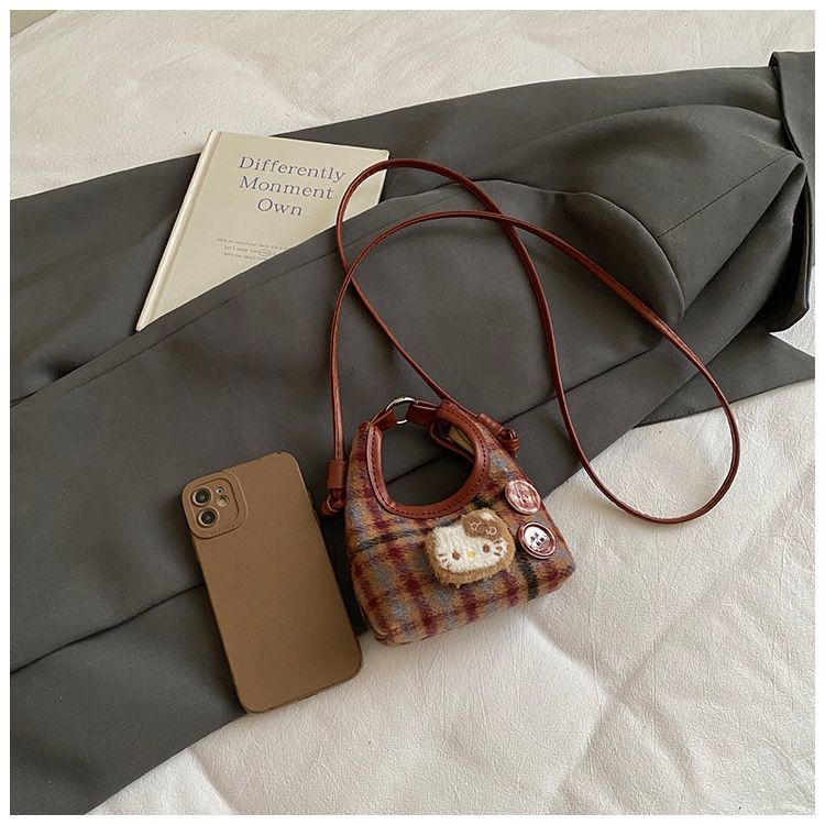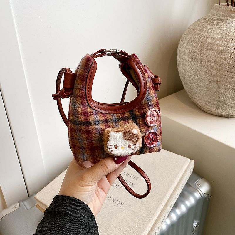 可爱格子新款女式秋冬网红斜挎包时尚百搭包儿童斜挎包小女孩过年
