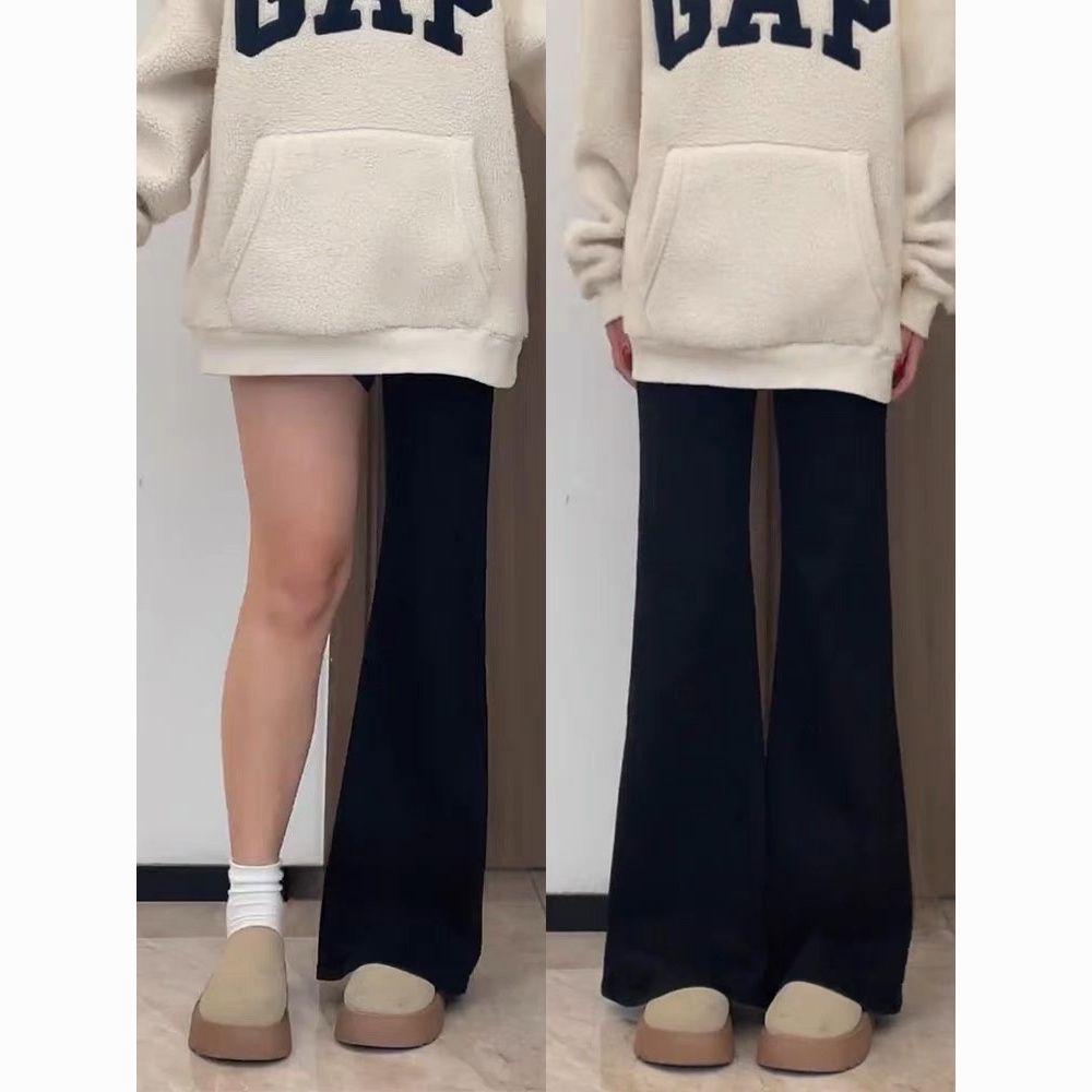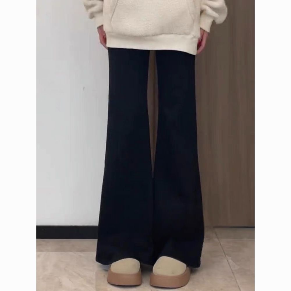 春秋夏大码300斤胖mm高腰窄版松紧微喇裤休闲宽松显瘦遮肉黑色裤
