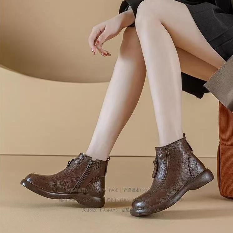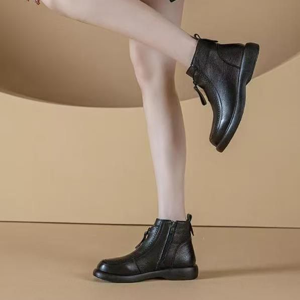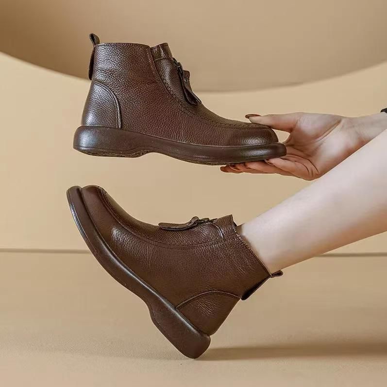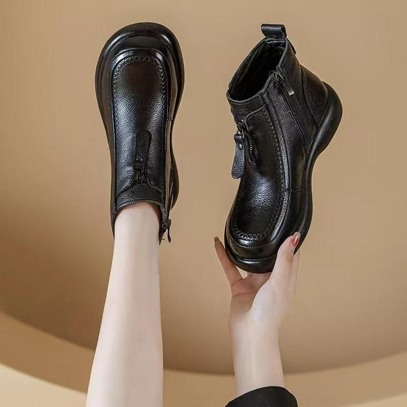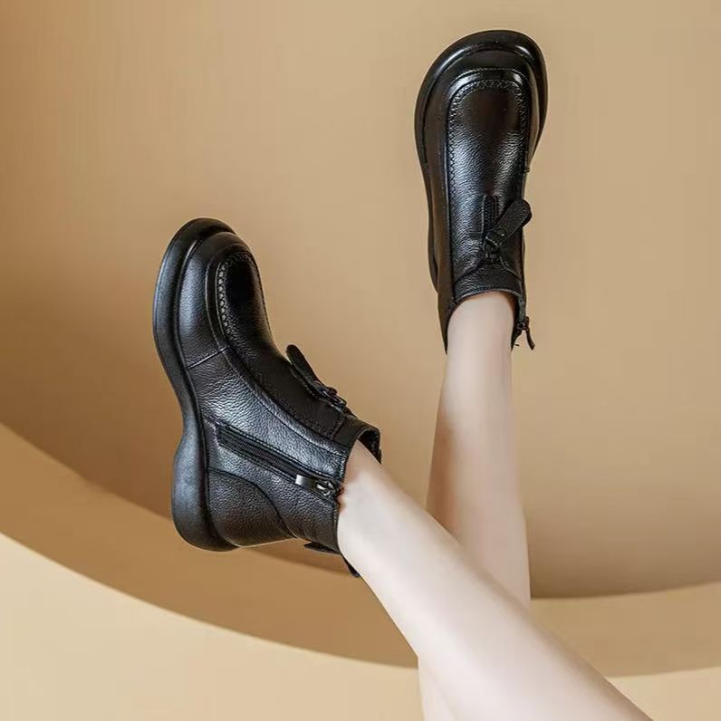 2025新款软底防滑保暖复古英伦风妈妈鞋短靴棉靴单靴马丁靴女