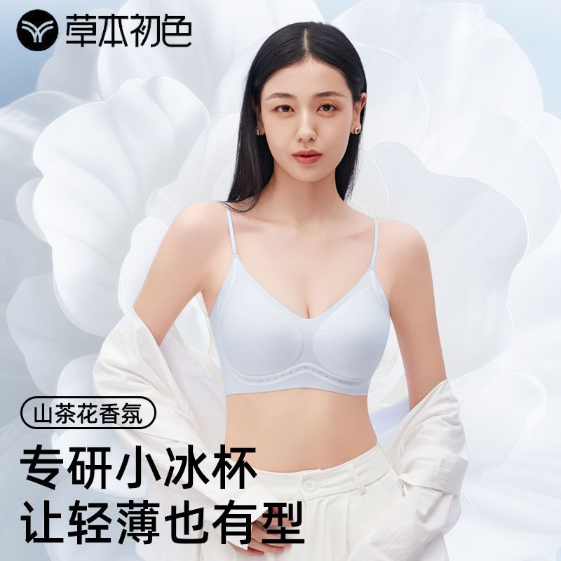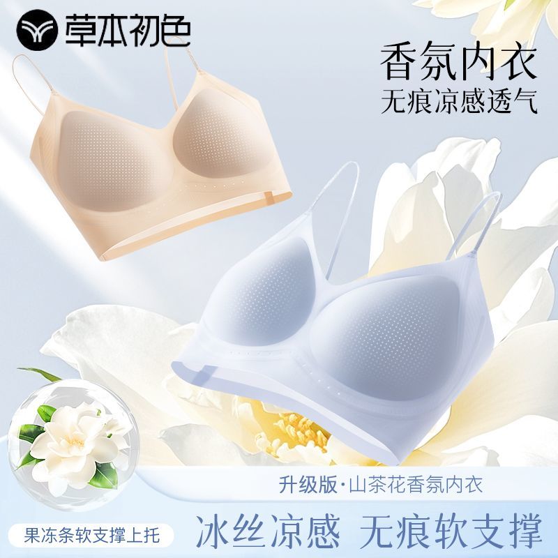 草本初色山茶花香氛内衣女超薄无痕无钢圈美背果冻条支撑聚拢文胸