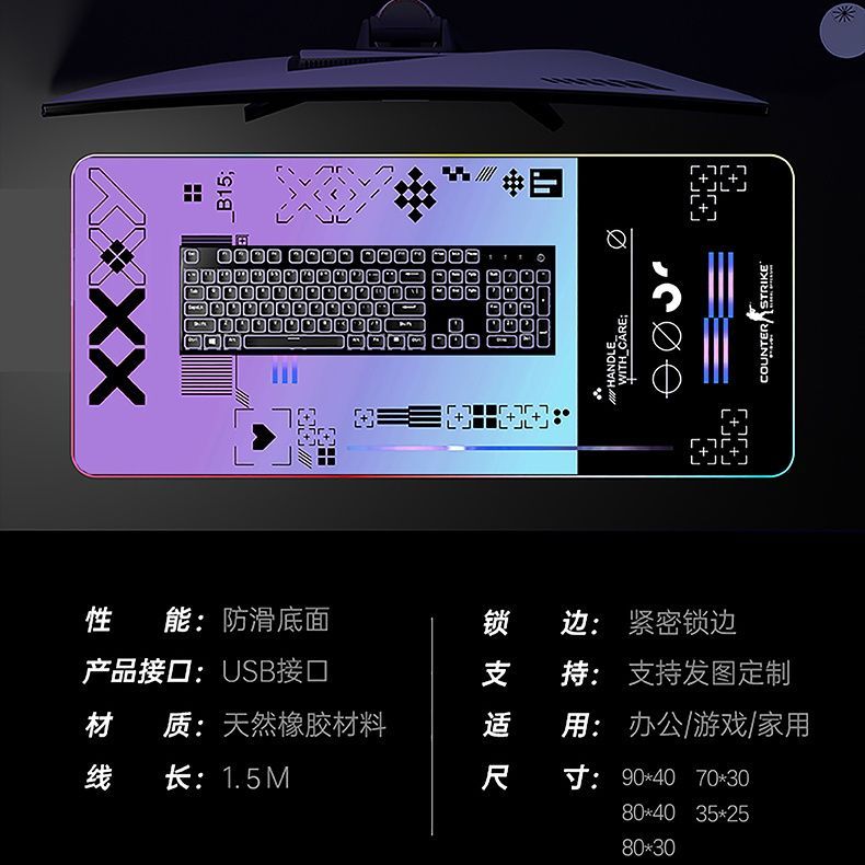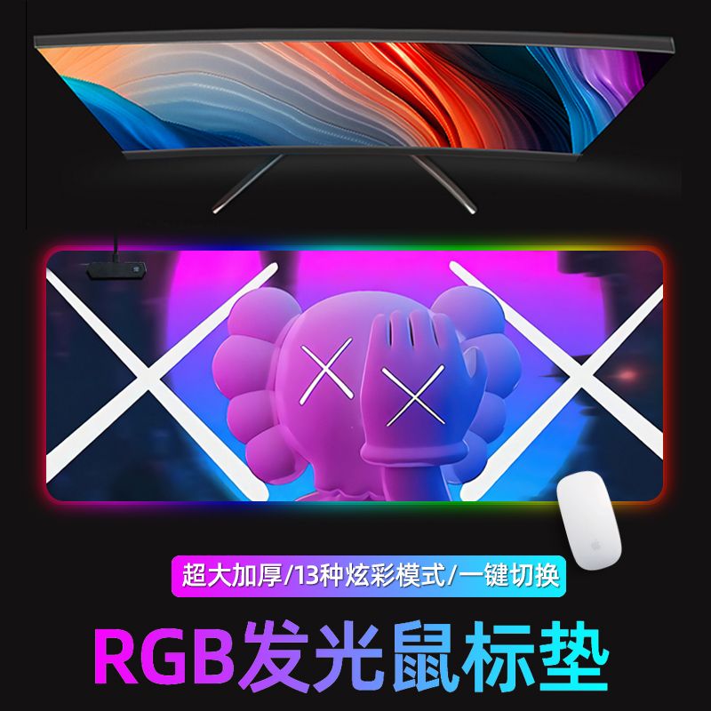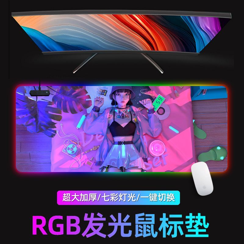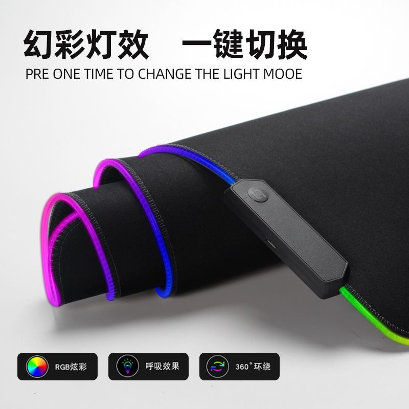 炫彩RGB发光鼠标垫游戏电竞超大英雄联盟高达黑色魅影动漫键盘垫