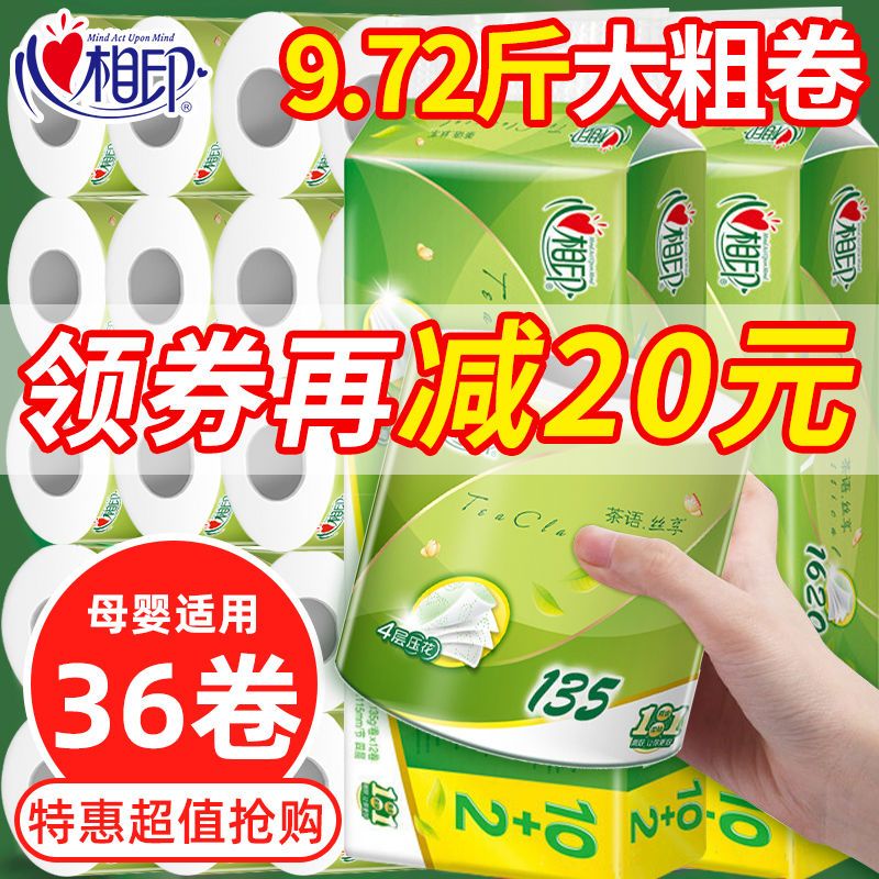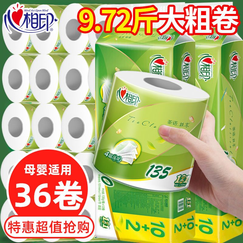 心相印卷纸茶语有芯卷筒纸卫生纸巾厕纸4层大卷酒店商务批发家用
