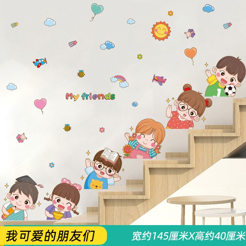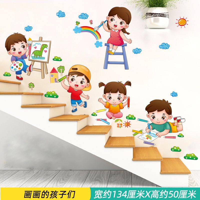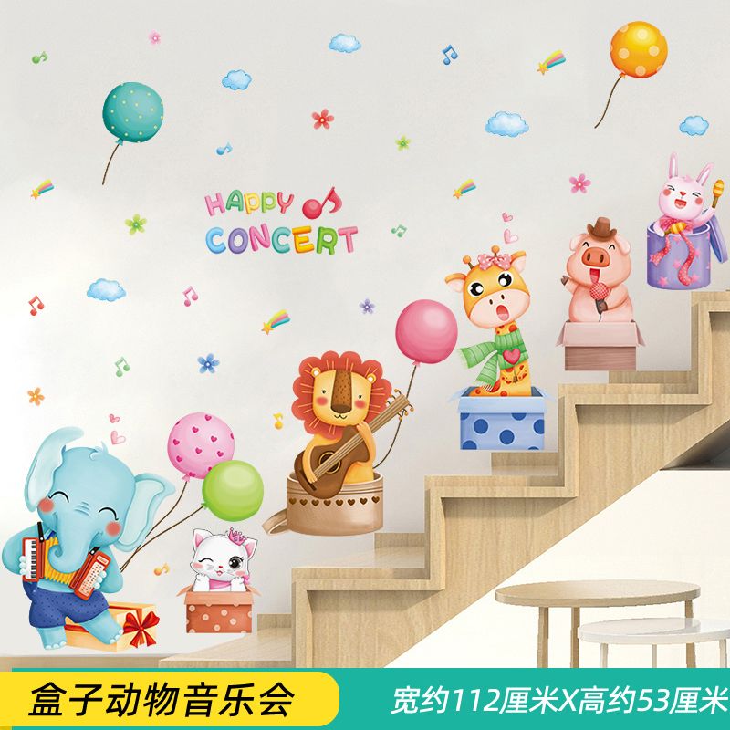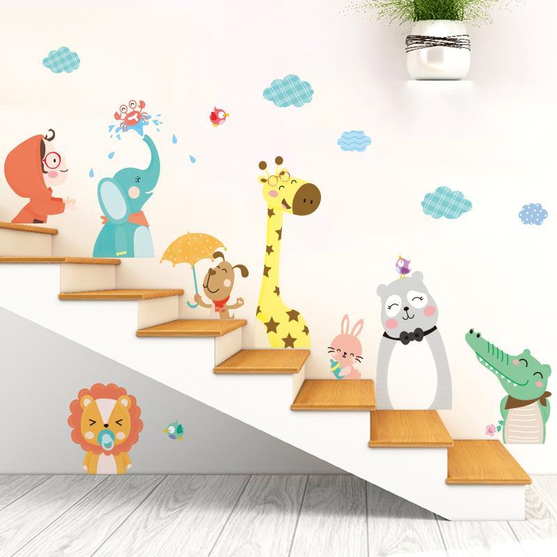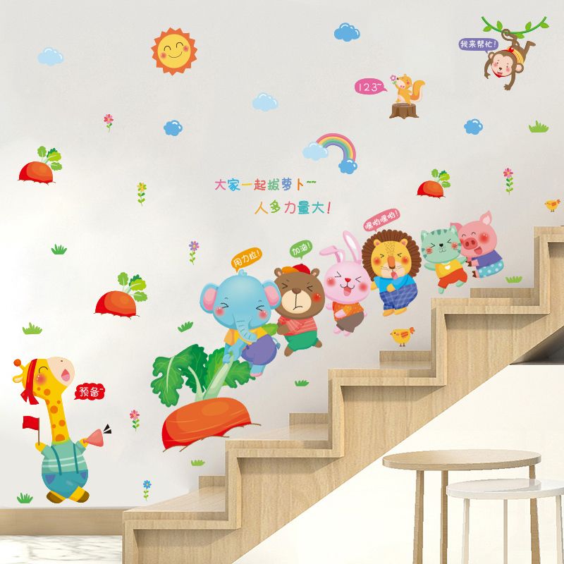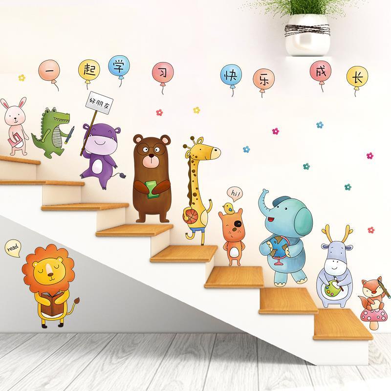 卡通动物楼梯墙面装饰幼儿园儿童房墙贴纸3D立体墙壁贴画墙纸自粘