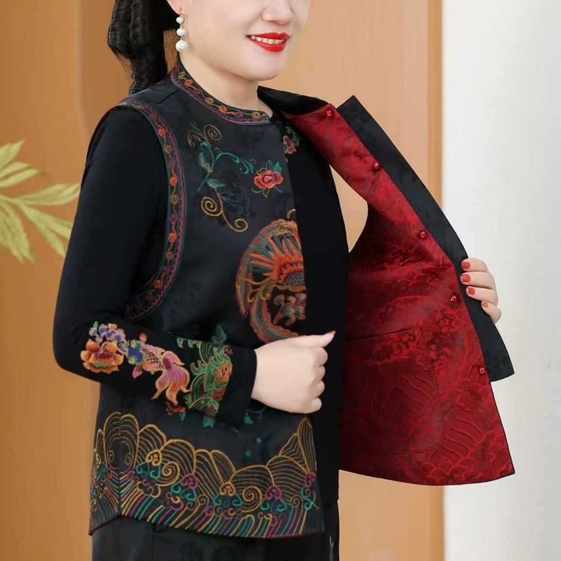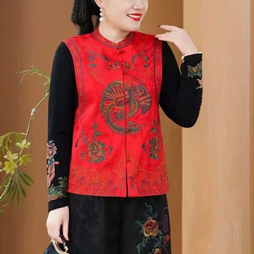新年国风新中式马甲时尚复古坎肩背心钮扣春秋款妈妈外穿无袖上衣